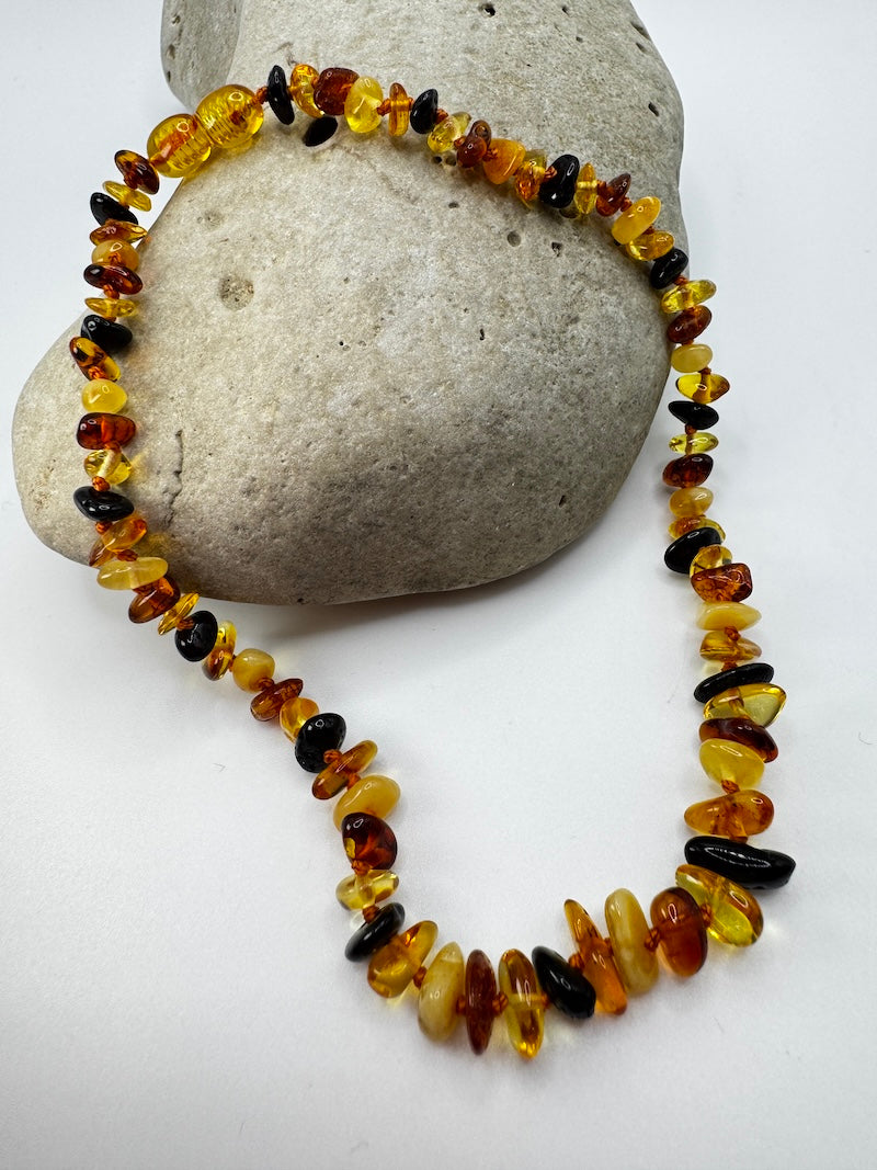 Da Bernstein ein Naturprodukt ist, sind die Steine der Kette unterschiedlich