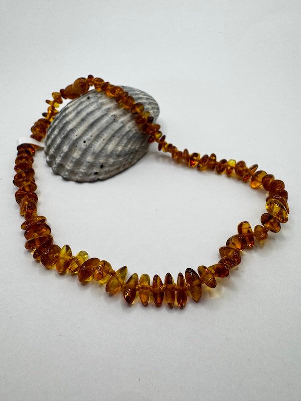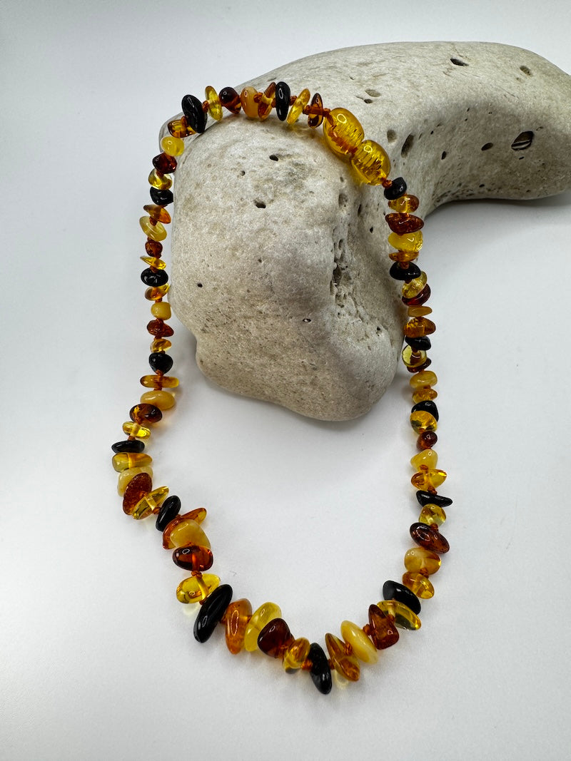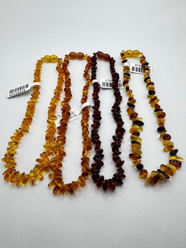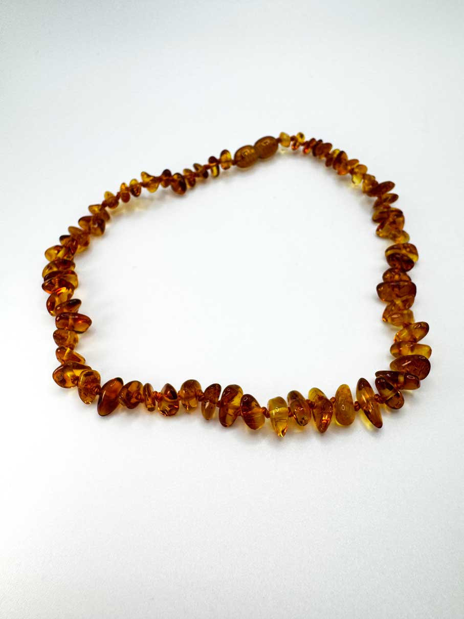 Die Kette ist in verschiedenen Bernsteintönen erhältlich.