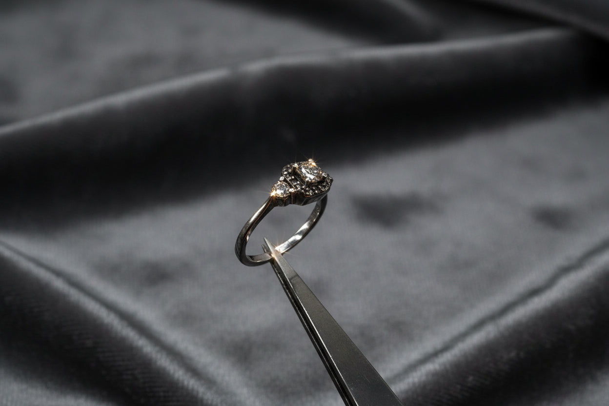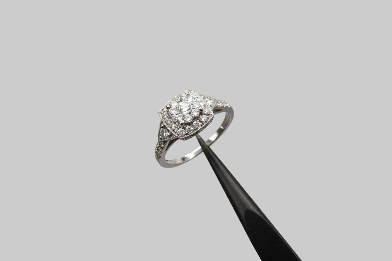 - Diamantqualität: Brillanz in Perfektion Die im Ring eingefassten Diamanten bestechen durch ihre außergewöhnliche Qualität. Jeder Stein wurde sorgfältig ausgewählt, um höchste Brillanz, Klarheit und Schliff zu gewährleisten. Das Gesamtgewicht von über 1 Karat garantiert eine beeindruckende Strahlkraft, die jeden Raum erhellt.