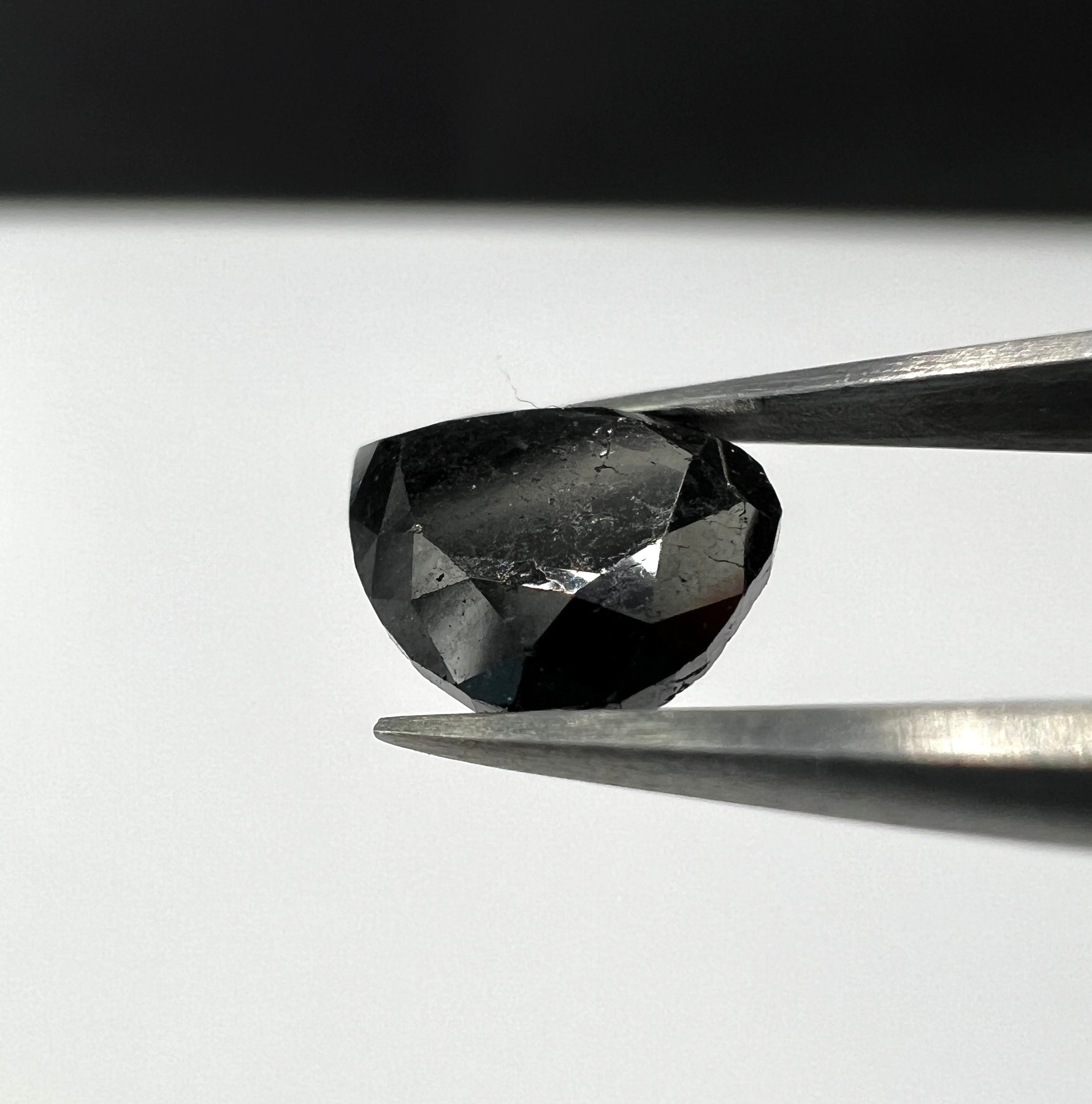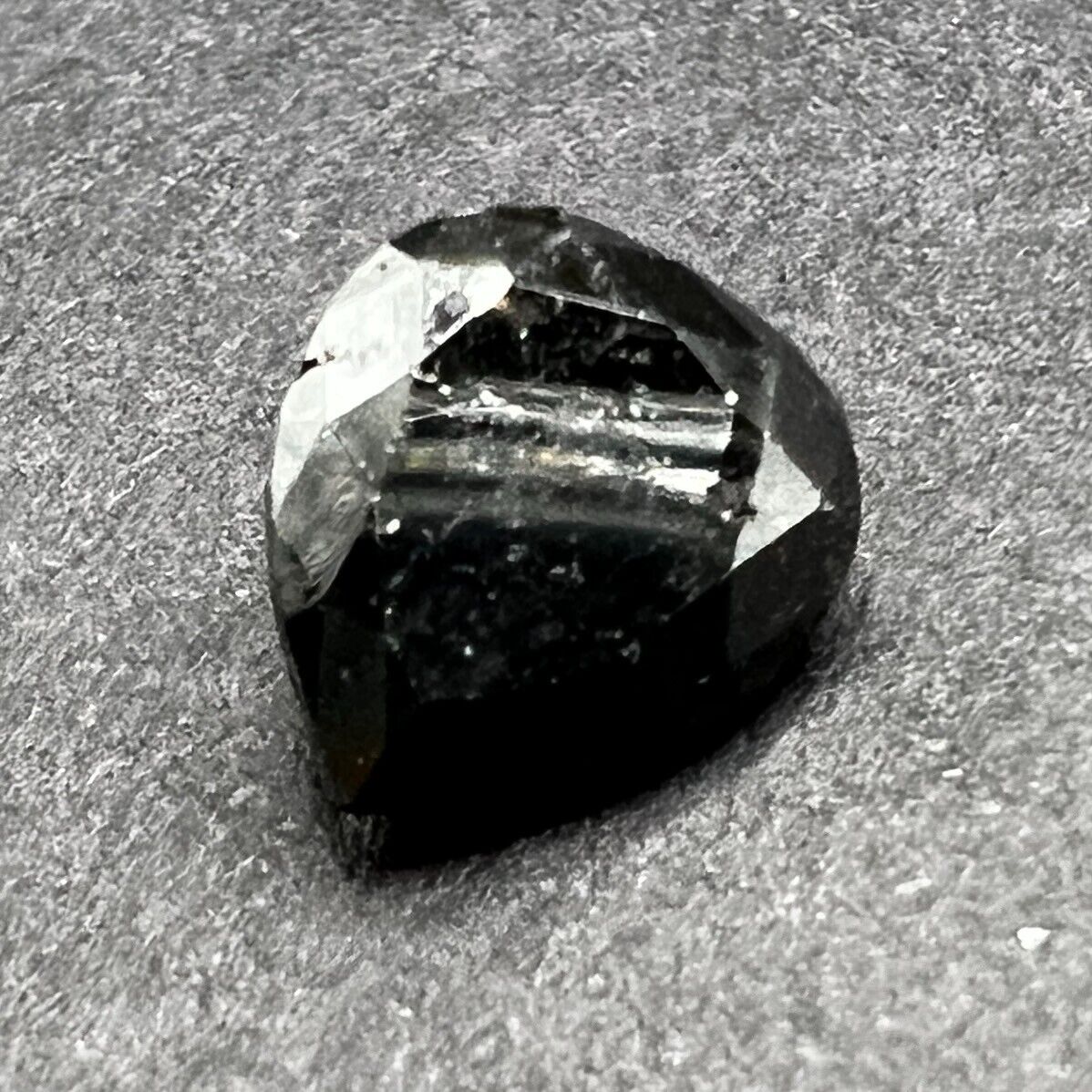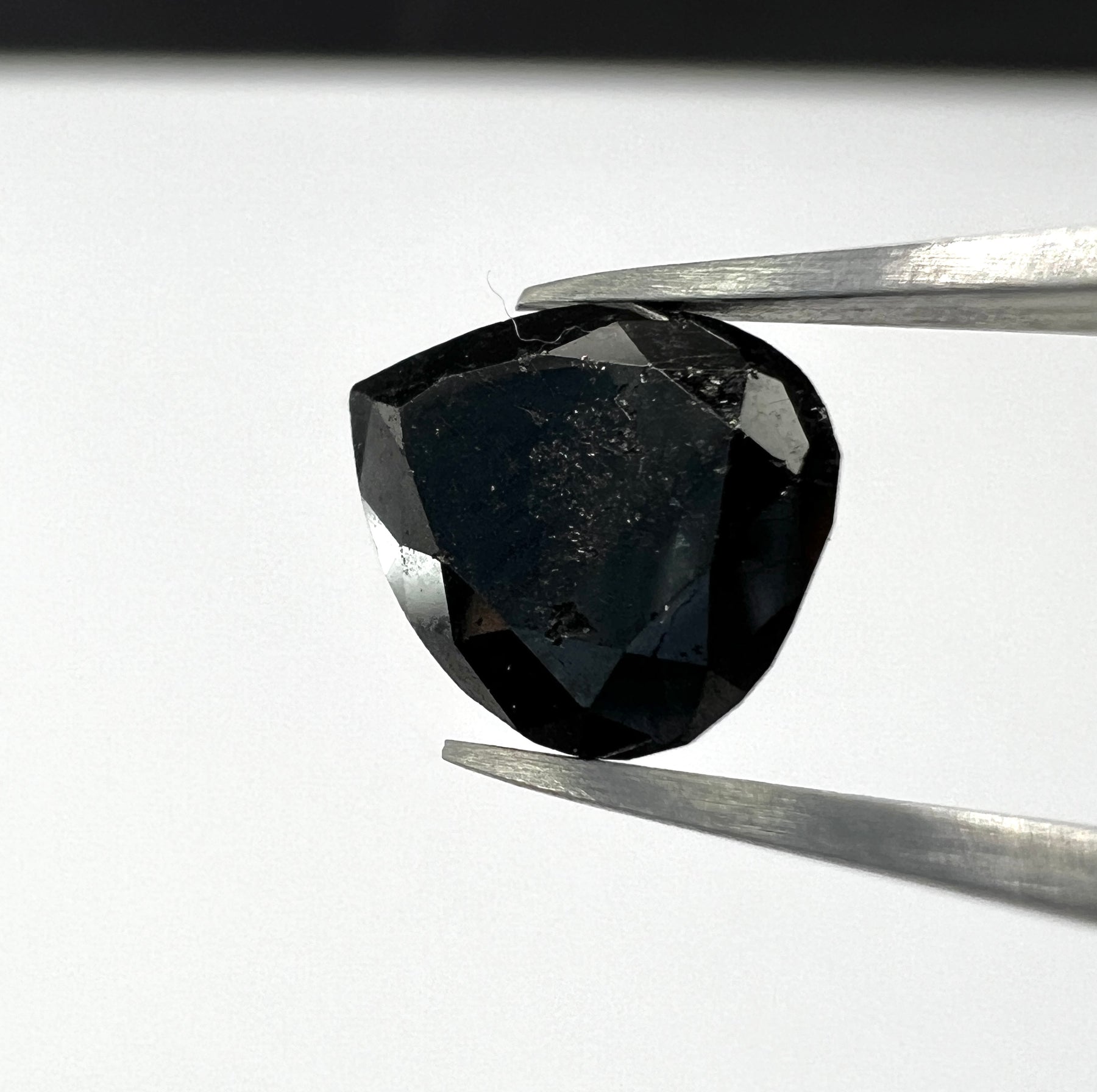 Loser natürlicher Diamant fancy Schwarz mit einem Gewicht von 1,615 Karat. Der Er hat eine trilliant-förmige Struktur und stammt aus Indien. Der Diamant eignet sich hervorragend als Schmuckstück und ist einzigartig in seiner Farbdiamantenintensität.