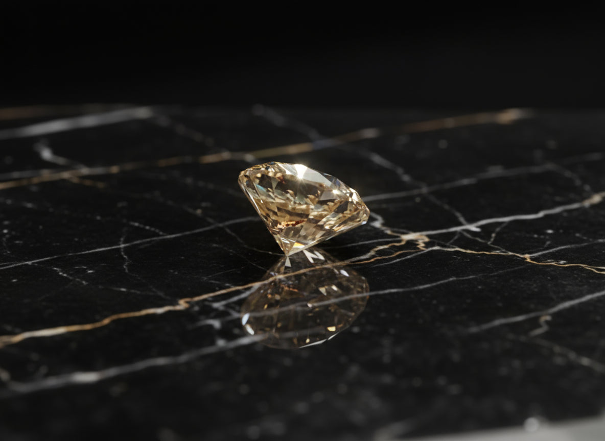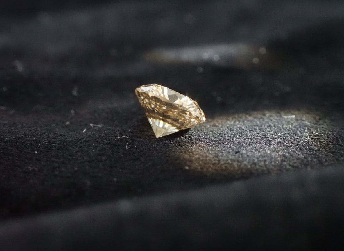 Dieser natürliche Fancy Champagne Diamant mit einem Gewicht von 0,55 Karat ist ein wahrhaftig einzigartiger Edelstein. Hergestellt in Indien und mit einem sehr guten Schliff versehen, besitzt dieser Brillantschliff eine hervorragende Oberflächenbeschaffenheit. Der Diamant ist unbehandelt und sein Ursprung ist ebenfalls in Indien. Mit seiner auffälligen Farbdiamantenintensität ist dieser lose Diamant ein wunderschöner Blickfang und eignet sich perfekt für die Verwendung in Schmuckstücken oder als Teil einer Edelsteinsammlung.